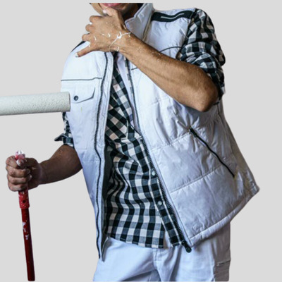Gilet imbottito sagomato, due tasche laterali con zip, una tasca al petto con zip ,interno pile in contrasto . Composizione: PONGEE RIPSTOP 240T 100% POLIESTERE. Peso: 180 GR/MQ. Misure: XS-S-M-L-XL-XXL-3XL